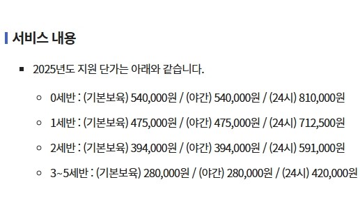 2025년 보육료 지원 기준은 다음과 같습니다.