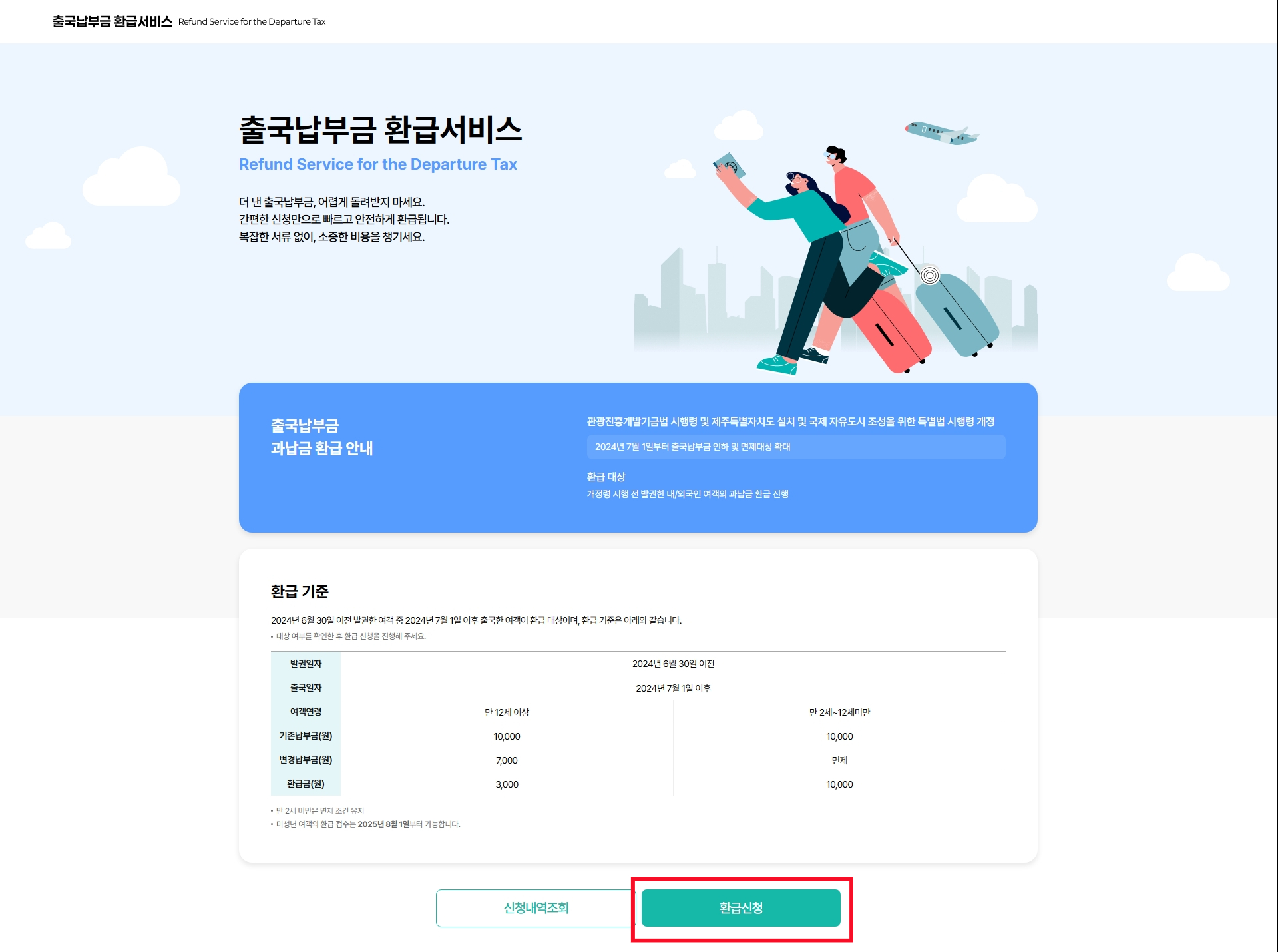 즉, 항공권은 2024년 6월 30일 이전에 예매한 분들 중 출국은 2024년 7월 1일 이후에 하신 분들이 환급 대상이 됩니다.